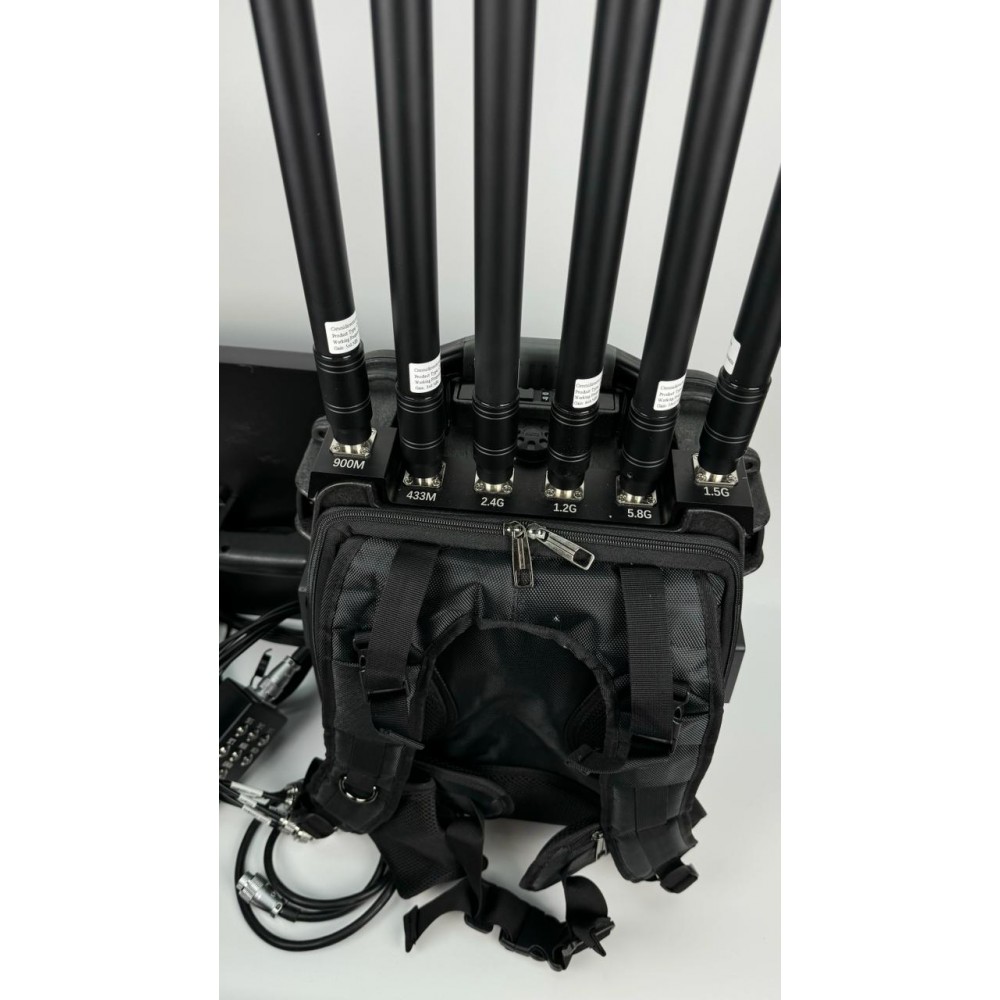 Рюкзак-подавитель оснащен всенаправленными антеннами, которые могут нарушать все частоты, используемые большинством коммерческих дронов. Это позволяет устройству создавать надежный защитный барьер, который блокирует радиосигналы дронов на расстоянии до 1.5 км.