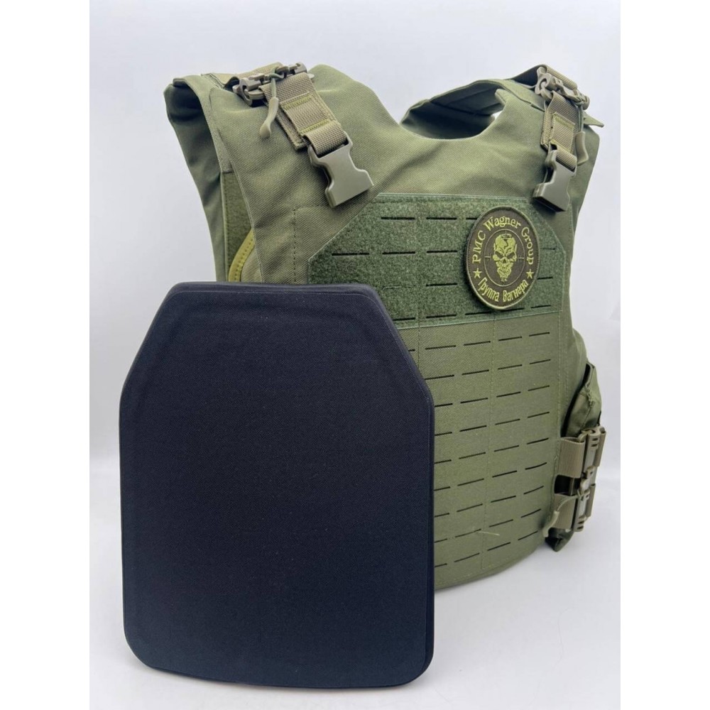 - Бронеэлемент: 36 слоев баллистической ткани из сверхвысокомолекулярного полиэтилена высокой плотности + 1 плита PE + 1 слой пенки толщиной 4,5 мм.
