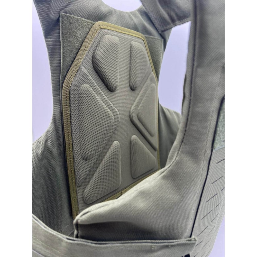 Бронежилет оснащен баллистическим пакетом, который включает переднюю, заднюю и боковые части. Он представляет собой сочетание 36 слоев баллистической ткани из сверхвысокомолекулярного полиэтилена высокой плотности, плюс 1 плита PE и 1 слой пенки толщиной 4,5 мм. Уровень защиты пакета составляет 4.4 с плотностью пуленепробиваемого слоя 145. Это обеспечивает высокую степень защиты от пуль и ударов.