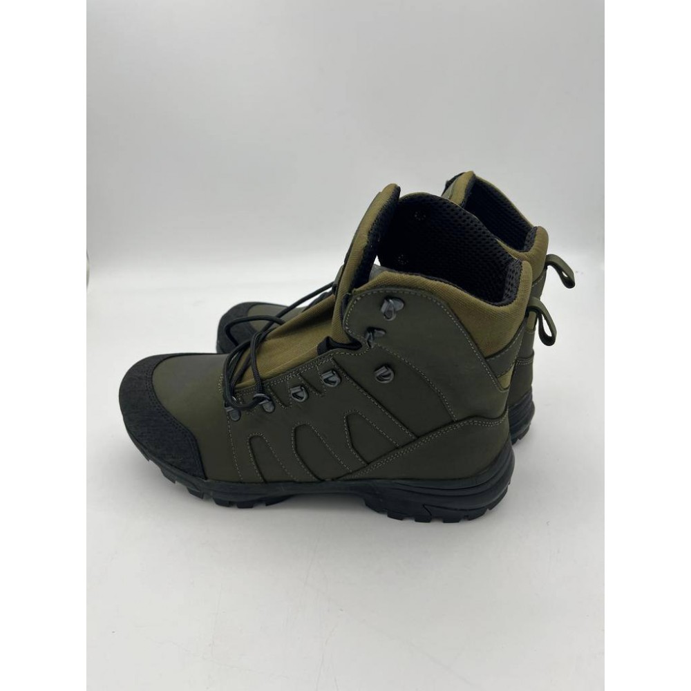 Ботинки фиксируются на ноге с помощью металлических петель для надежной регулируемой посадки. Усиленные носки из антивандального материала обеспечивают дополнительную защиту в экстремальных условиях. Вкладная анатомическая стелька может быть заменена по мере необходимости, что позволяет адаптировать обувь к индивидуальным особенностям стоп и обеспечивает удобство при уходе и сушке.