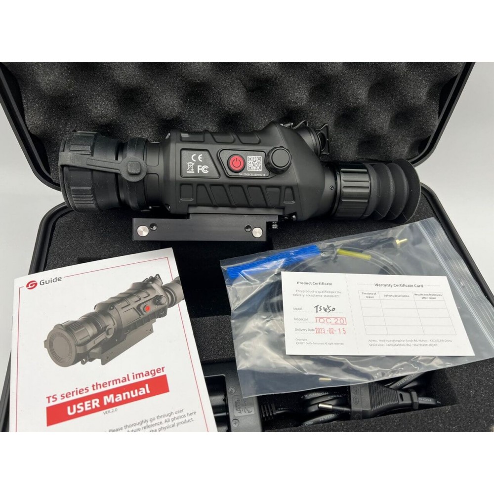 Тепловизионный прицел Guide TS450 представляет собой высокотехнологичный оптический инструмент, разработанный для целевой стрельбы на средние и большие дистанции из огнестрельного оружия, оборудованного посадочным местом Picatinny. Он предназначен для использования как в условиях ночной охоты, так и в случаях ограниченной видимости, таких как туман, дождь или темнота. С данным прицелом возможно точное обнаружение и наблюдение животных и целей на расстоянии до 1400 метров.