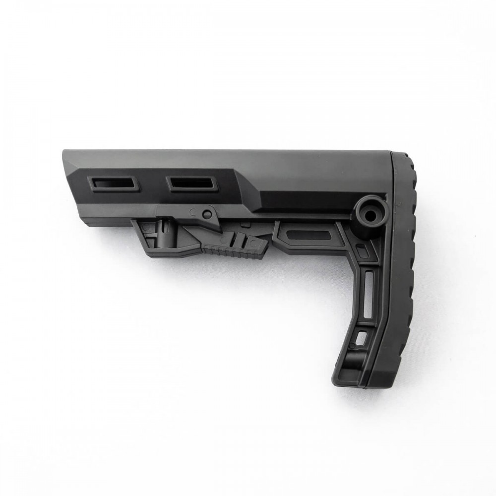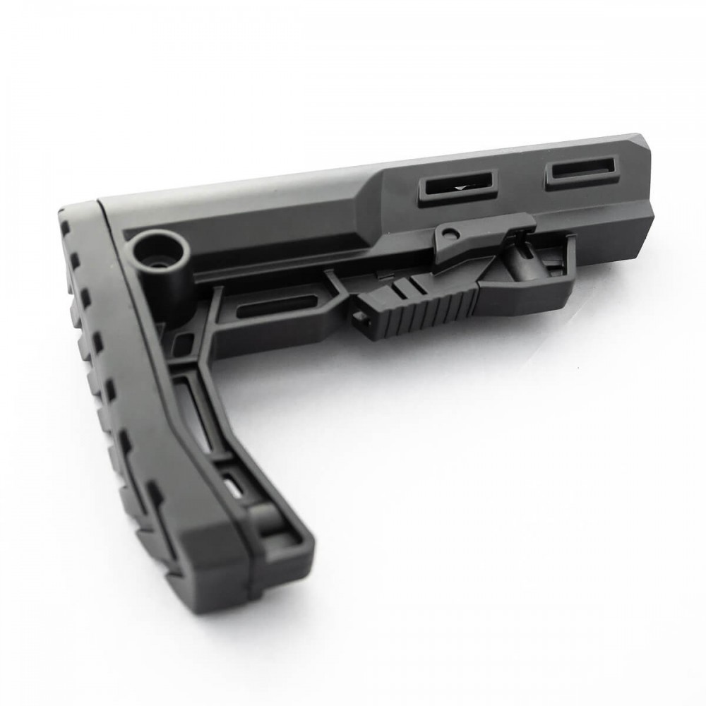 Телескопический приклад Alpha - это легкий и удобный приклад, разработанный специально для требовательных пользователей, таких как военные, представители силовых структур, спортсмены и охотники, которые ценят легкий вес и надежность своего оружия. Вот основные характеристики и особенности приклада Alpha: